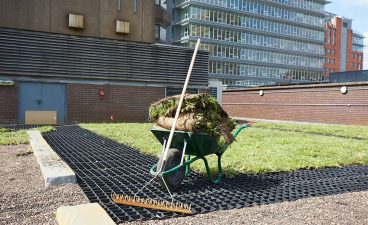 STRI Group’s construction arm, Carrick Construction, installed the roof in June 2021 over the space of two weeks. Due to the inner-city location of the site and consequent lack of storage facilities, there was a need to deviate from normal procedure; this meant that rather than a standard delivery of materials and machinery, this was staggered over a number of days, using early morning deliveries. Also, the movement of the materials and machinery from kerbside to rooftop was undertaken as quickly as possible to cause minimal disruption to the local neighbourhood. However, this then posed additional challenges as we needed to ensure that the maximum weight capacity of the roof was not exceeded at set points. Due to the high temperatures experienced during the build, the bespoke wildflower turf also had to be laid rapidly and heavily irrigated to prevent irreversible damage. The initial construction schedule of three weeks was achieved in just two weeks through a combination of long days and careful planning.